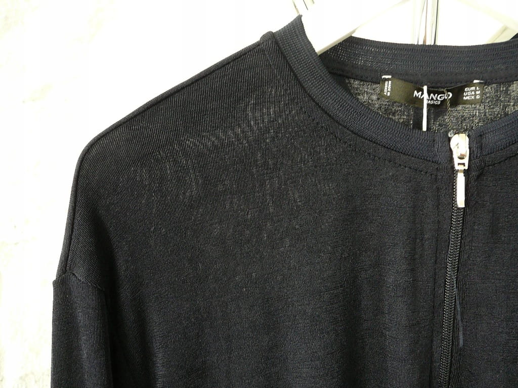 Granatowa damska bluza z połyskiem, zapinana na zamek, z długim rękawem - rozmiar 40 L - Mango