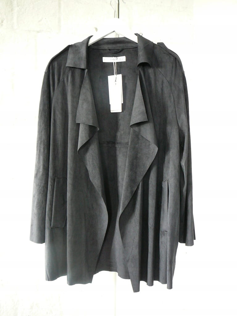 Granatowa damska kurtka z miękkiego materiału przypominającego zamsz, z długim rękawem i kieszeniami - rozmiar 34/36 XS/S - Mango