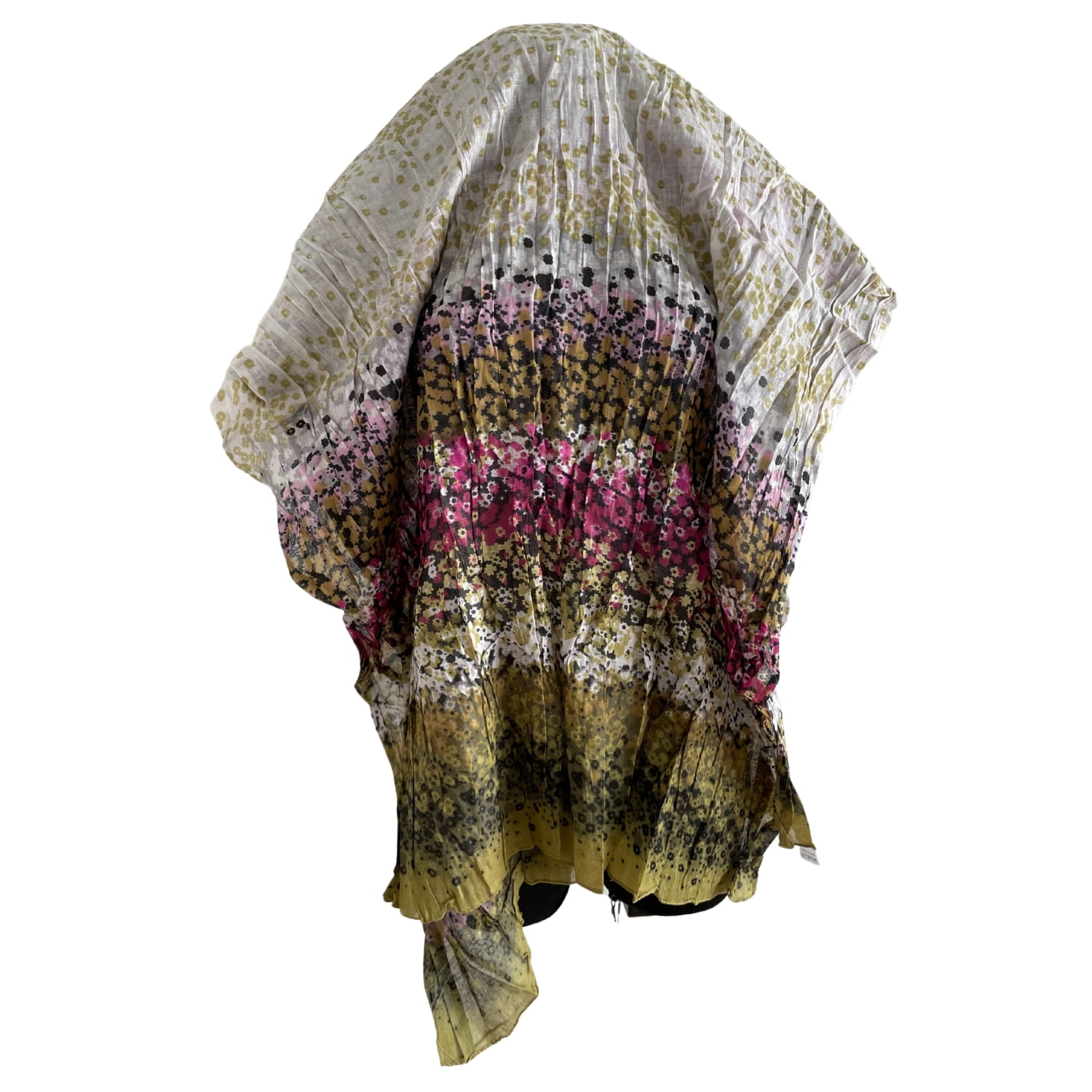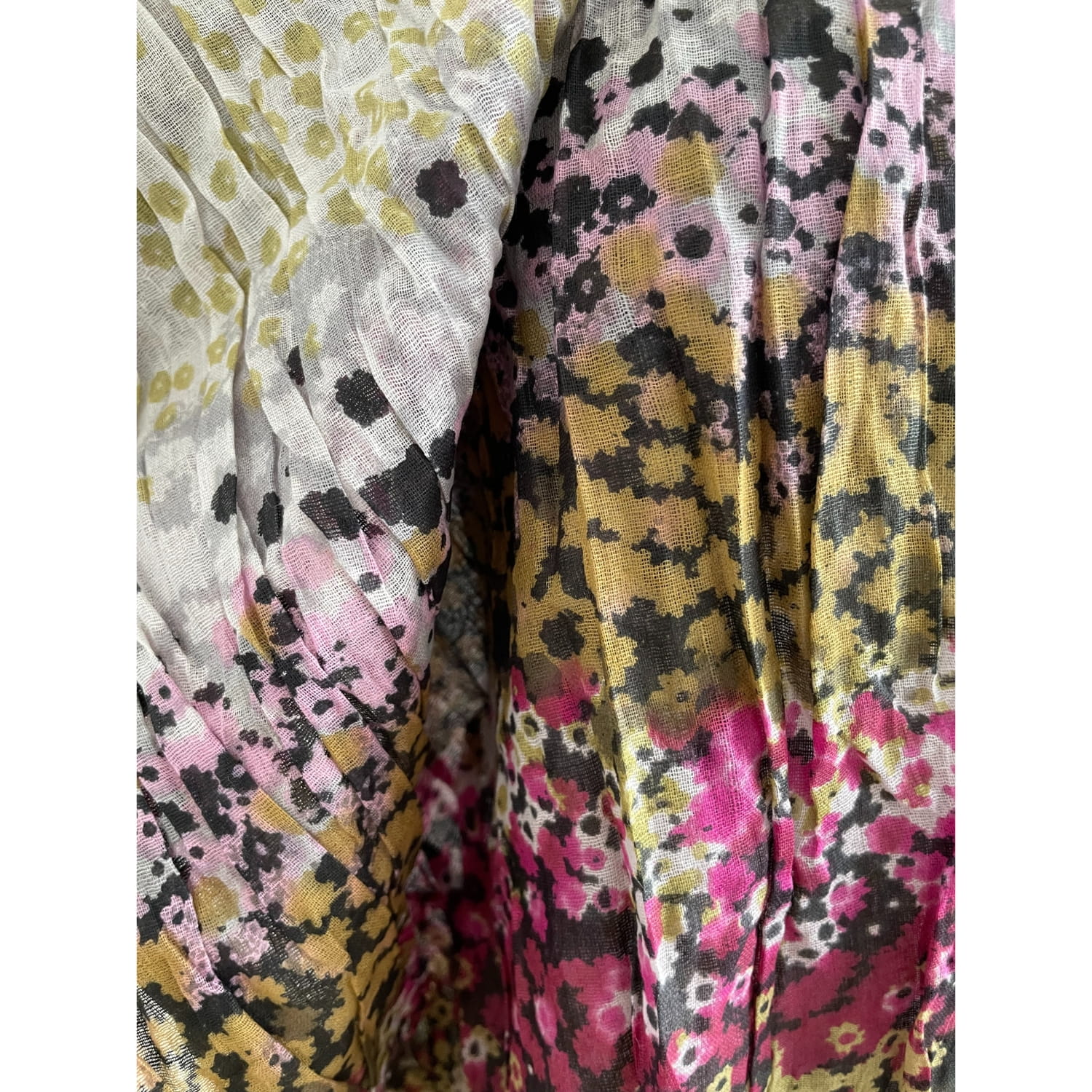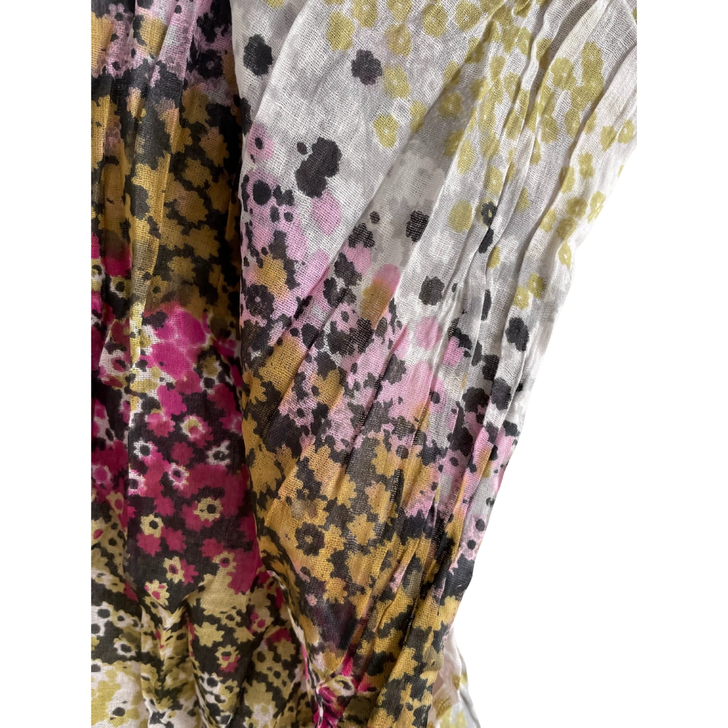 Indyjska bawełniana damska chusta w drobne kwiaty - kolor fuksja, limonka, biel - ok. 180 x 60 cm