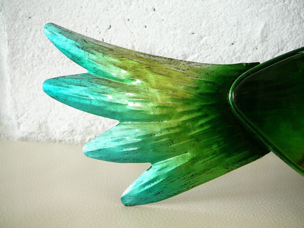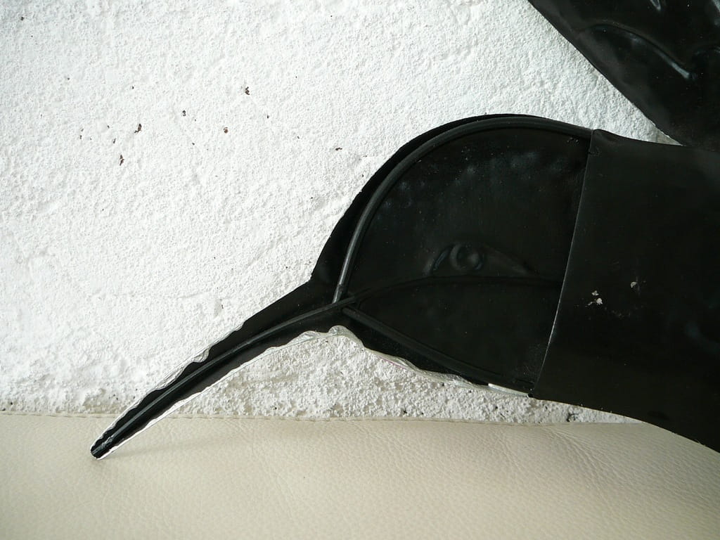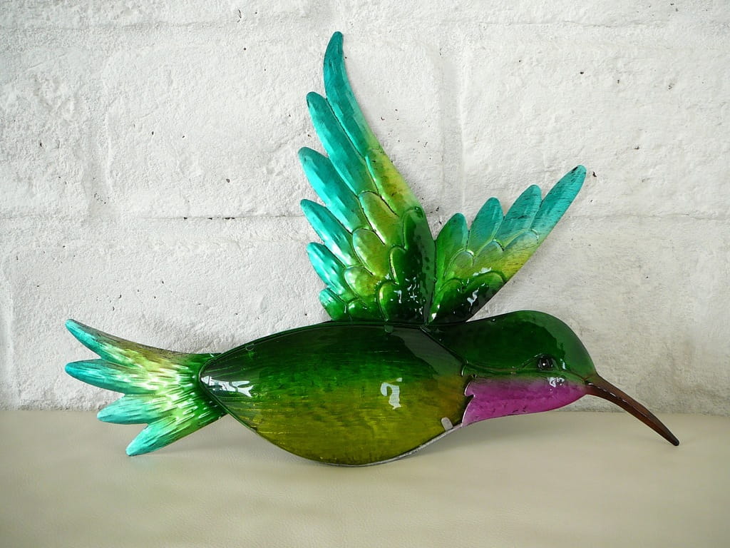 Dekoracja ścienna: kolorowy koliber wykonany z metalu i szkła