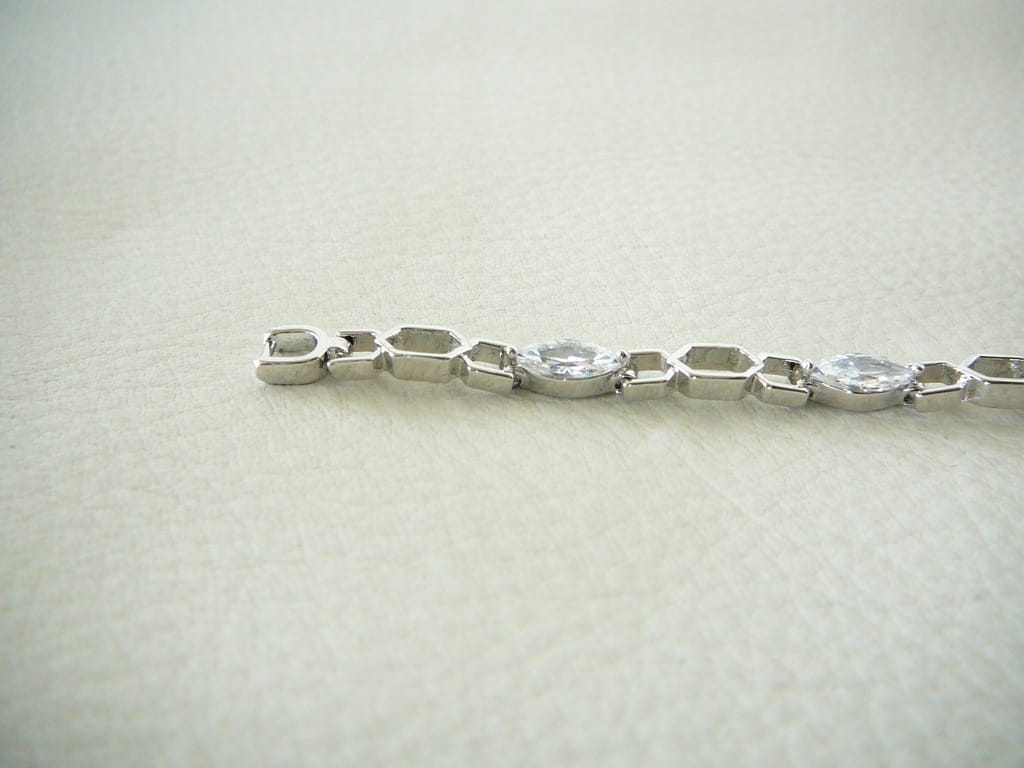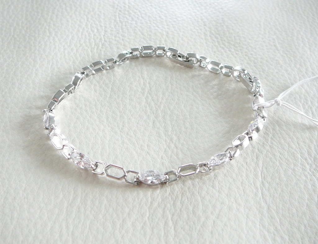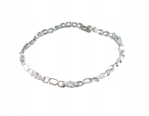 Łańcuszkowa bransoletka platerowana białym złotem z podłużnymi cyrkoniami