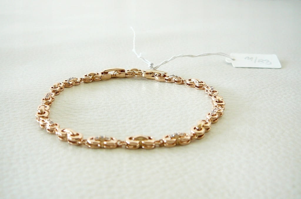 Łańcuszkowa bransoletka platerowana złotem z połyskującymi, przeźroczystymi cyrkoniami