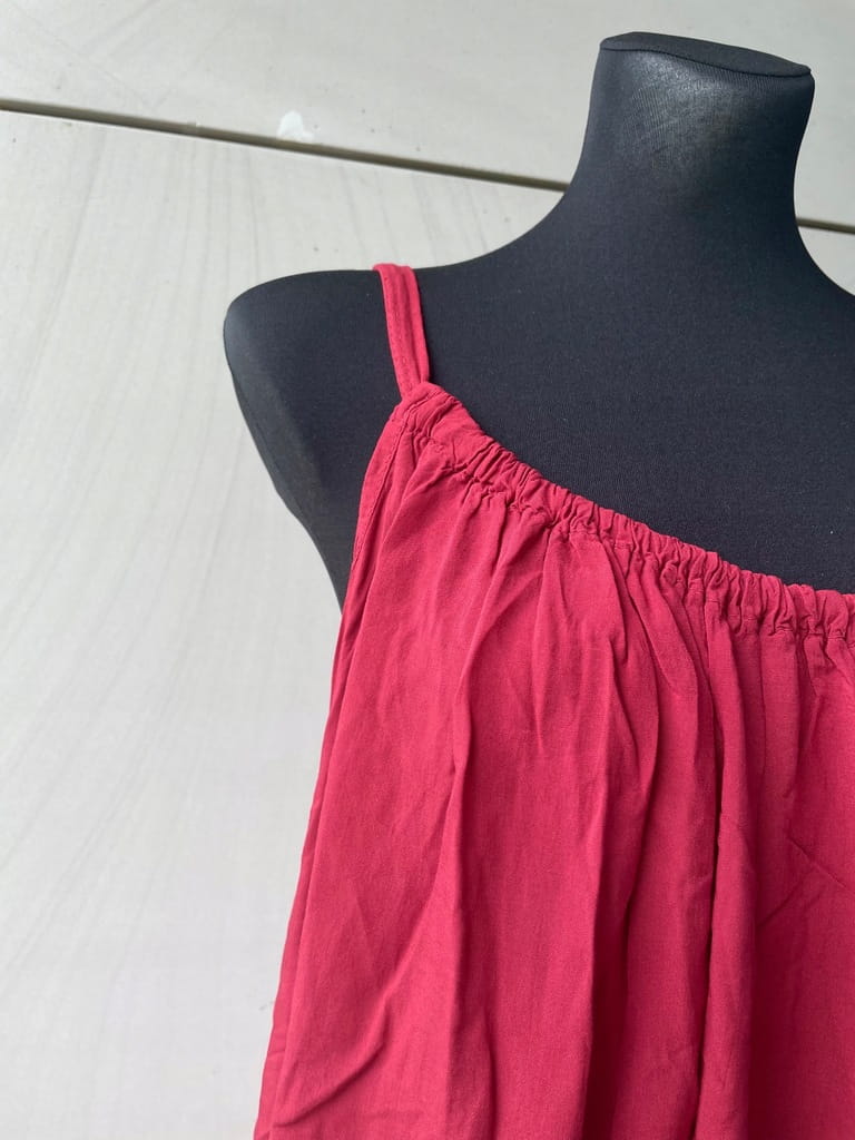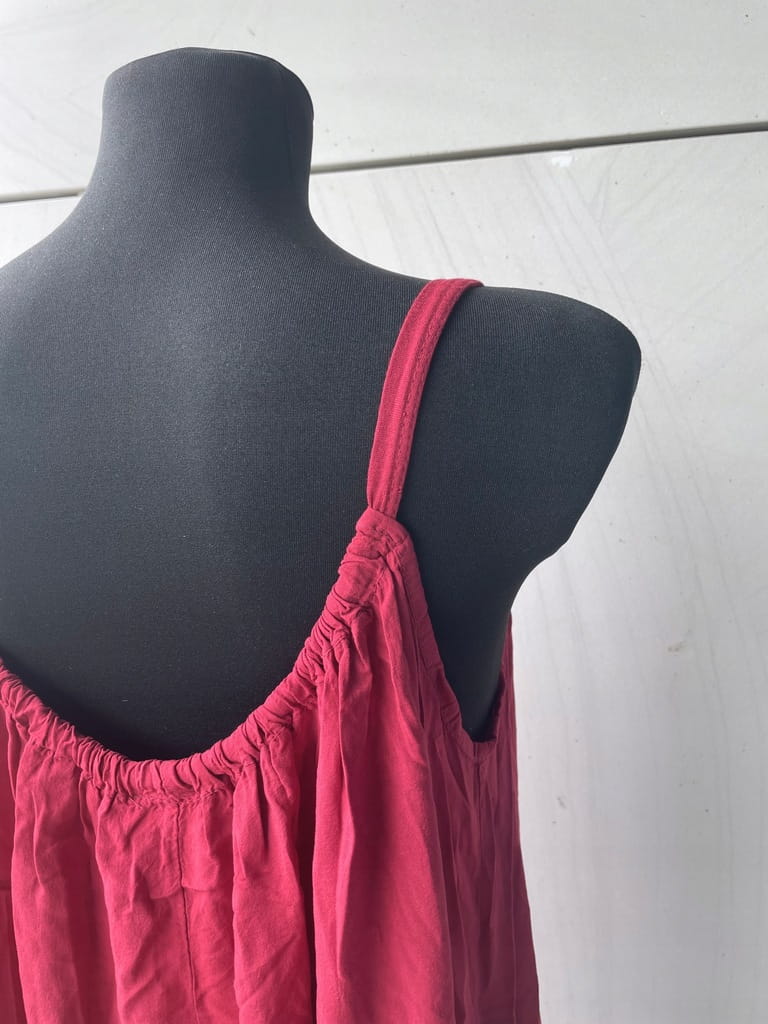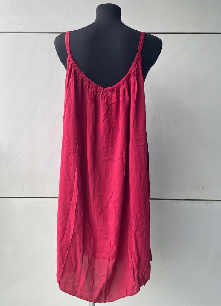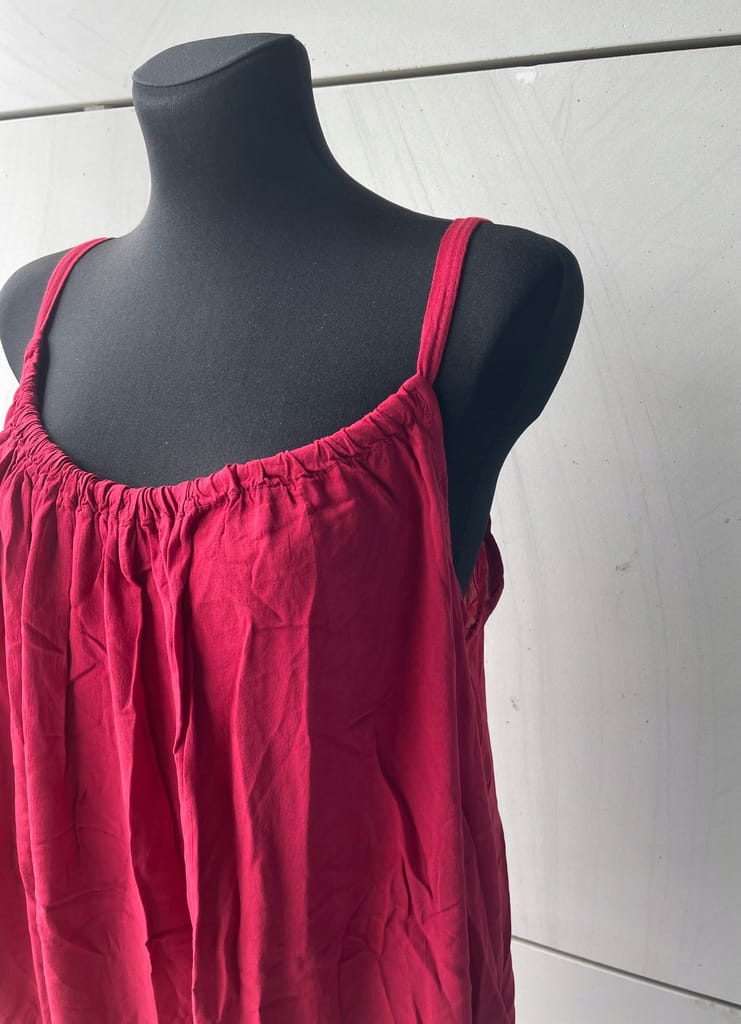 Letnia, cienka włoska bordowa sukienka na ramiączkach - rozmiar 38 M w kroju oversize