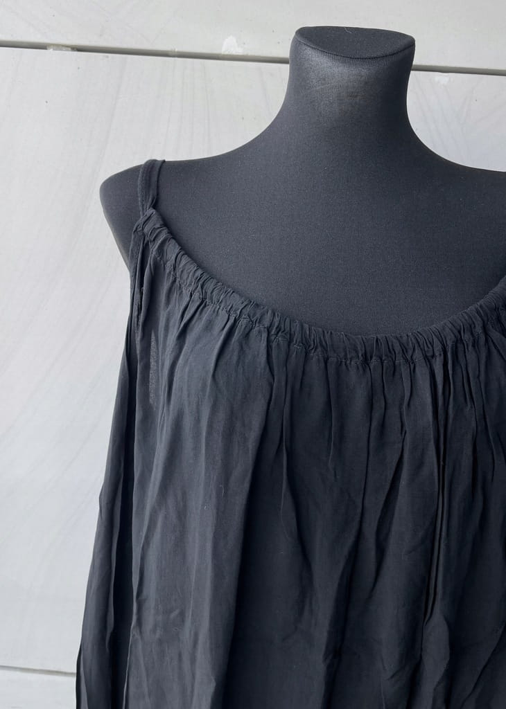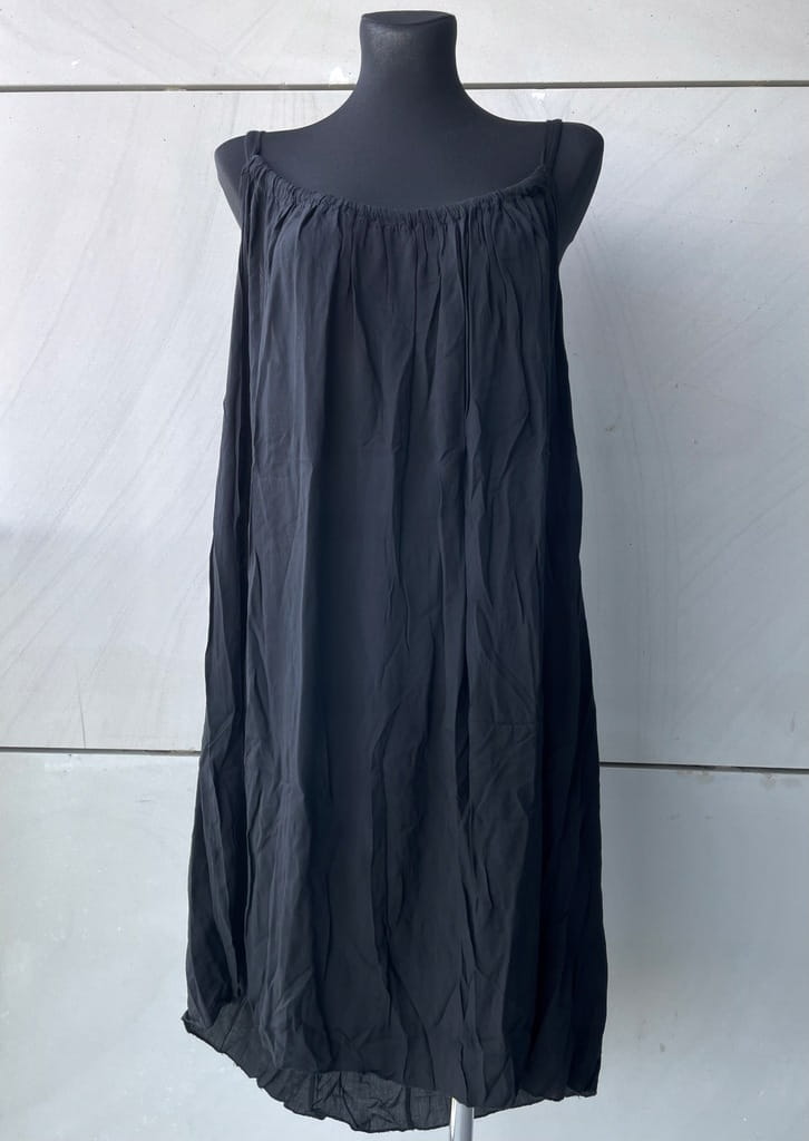Letnia, cienka włoska czarna sukienka na ramiączkach - rozmiar 36 S w kroju oversize