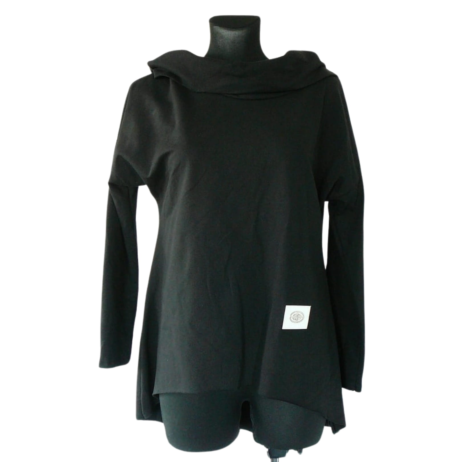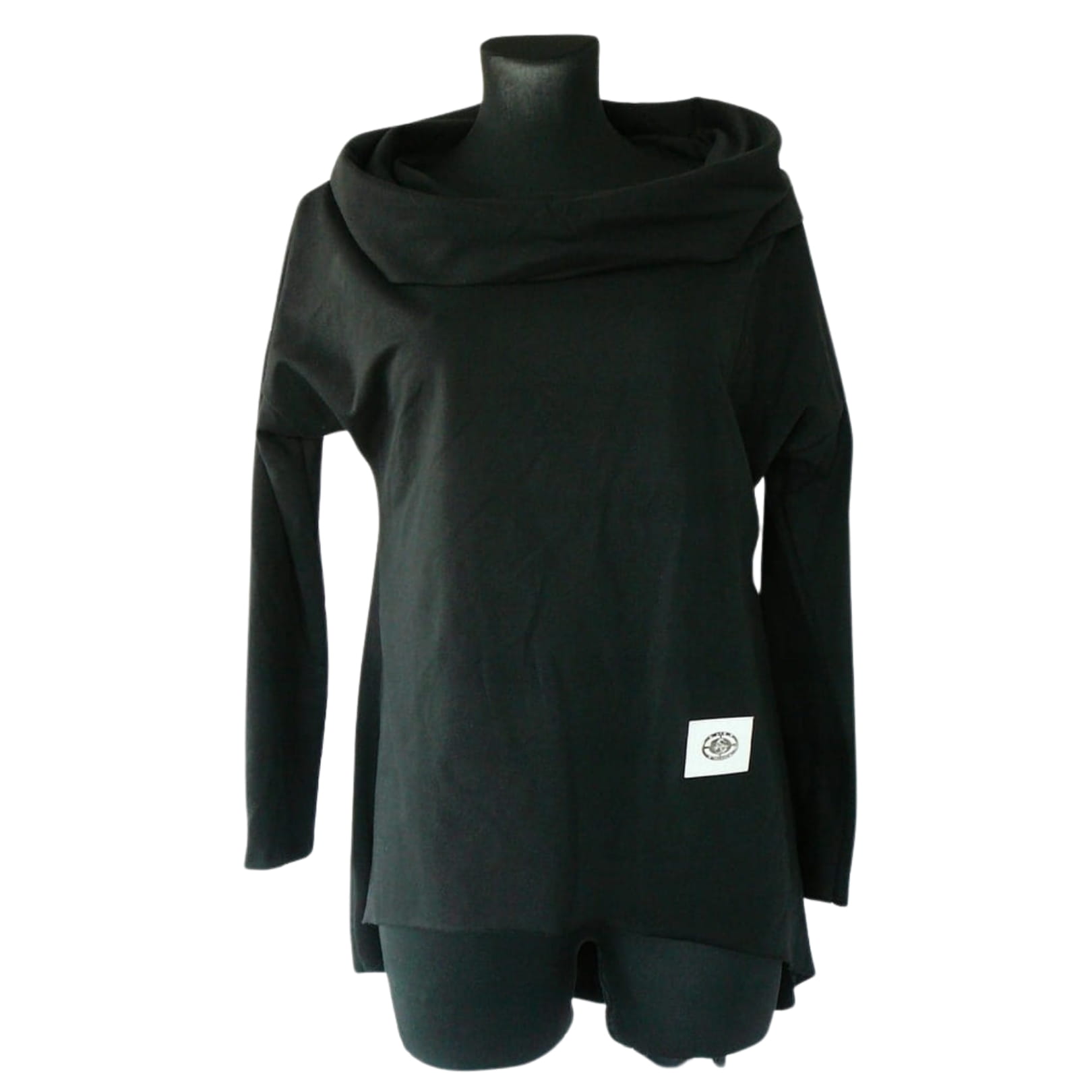 Luźna czarna włoska damska bluza z szerokim golfem kapturem, z długim rękawem - r. uniwersalny