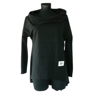 - z szerokim golfem, który można nosić w dwóch wersjach: jako bluzę z luźnym golfem oraz jako bluzę z kapturem (proszę spojrzeć na prezentację na zdjęciach)