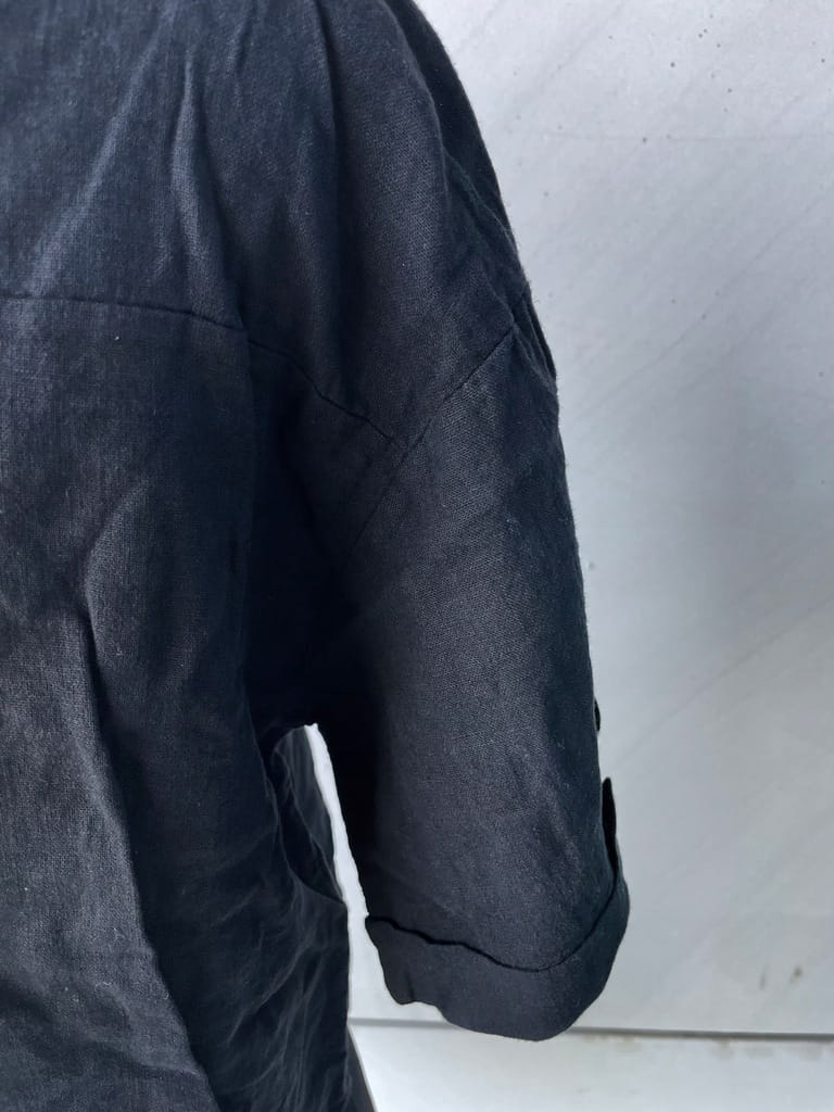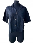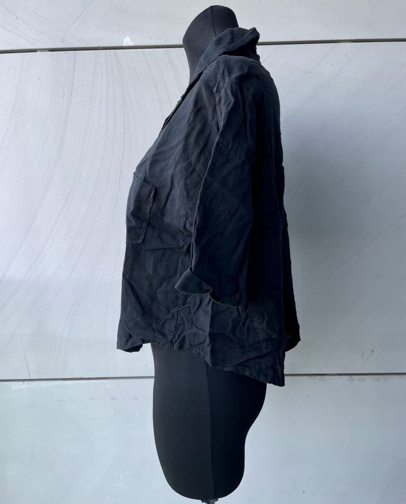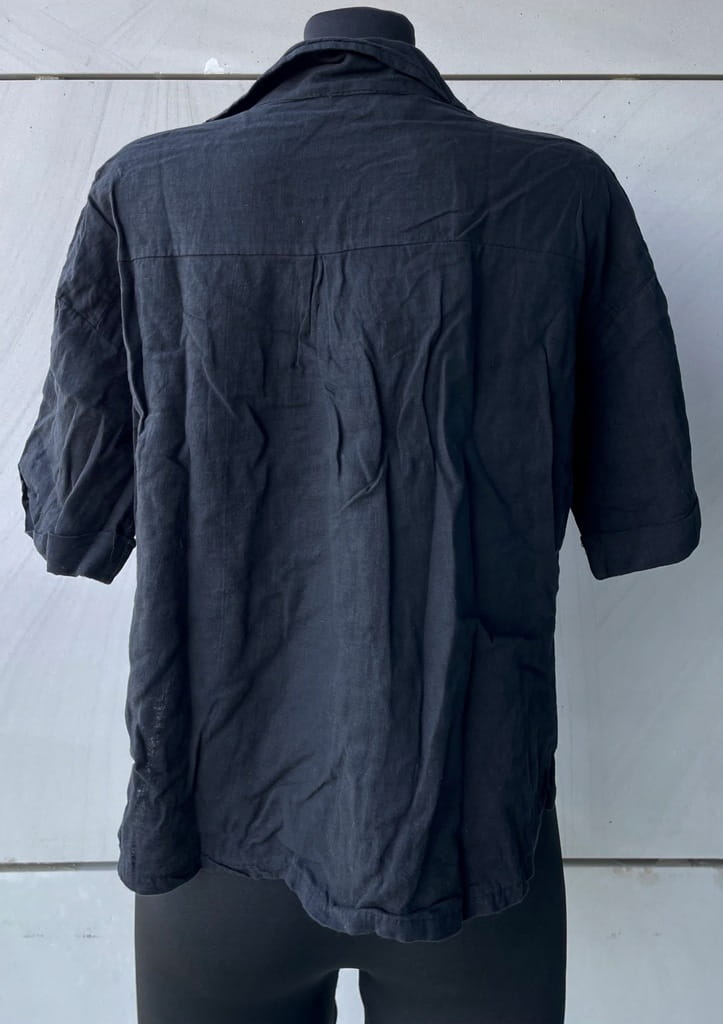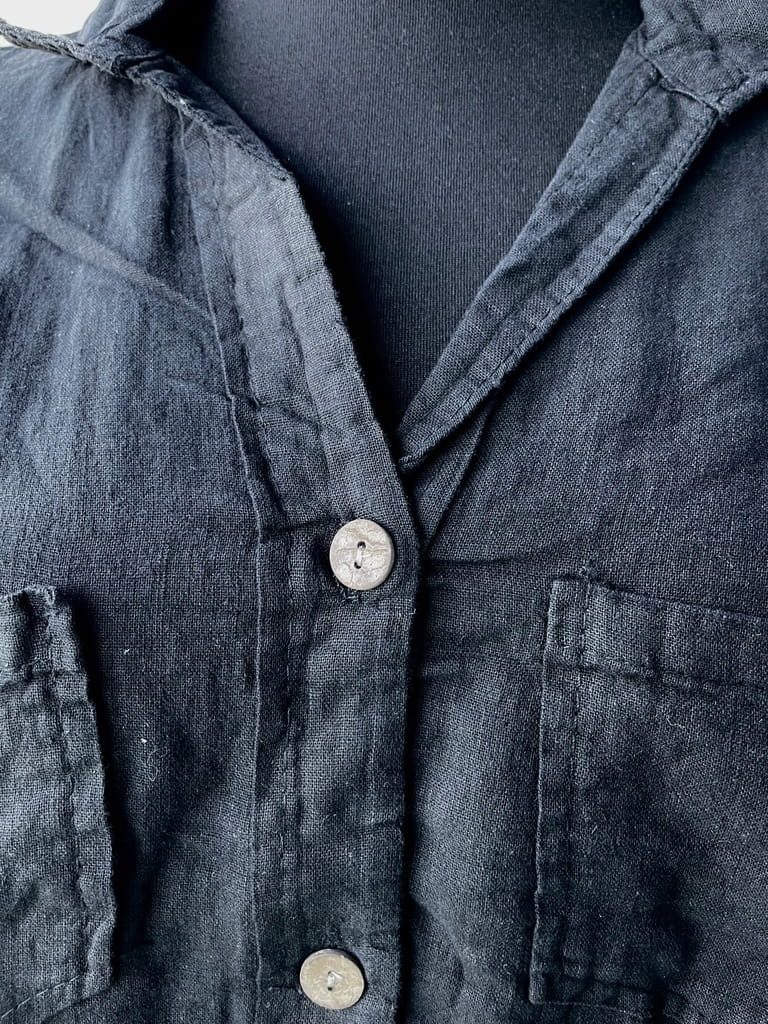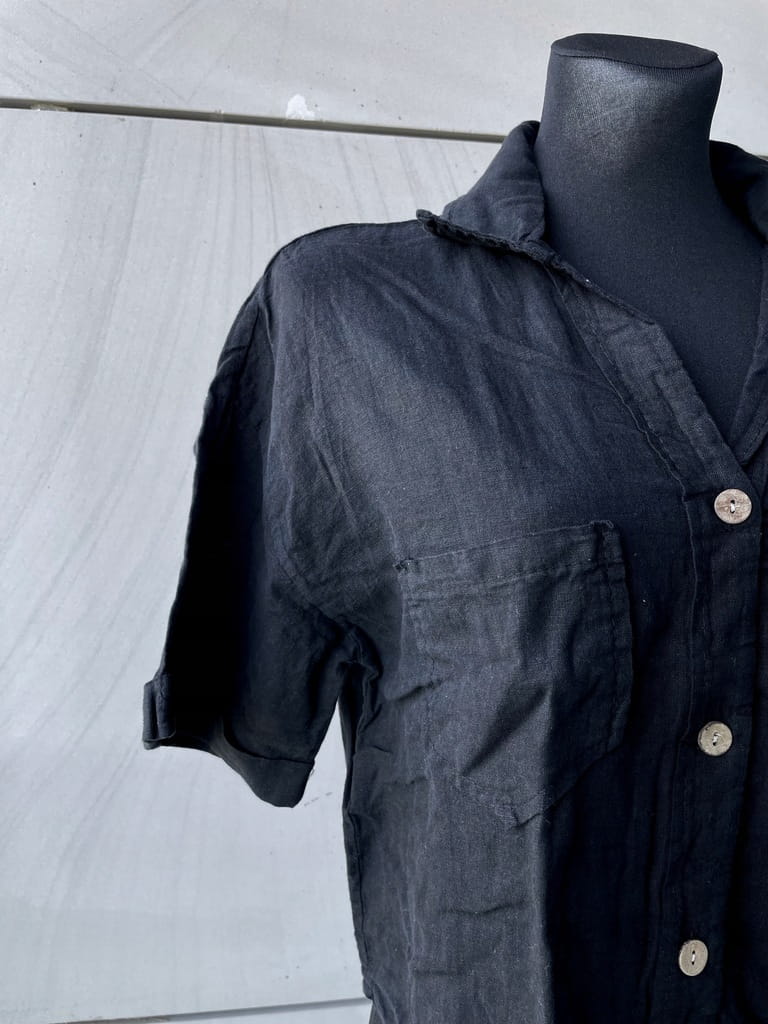 Luźna krótka włoska rozpinana bluzka z domieszką lnu w kolorze czarnym