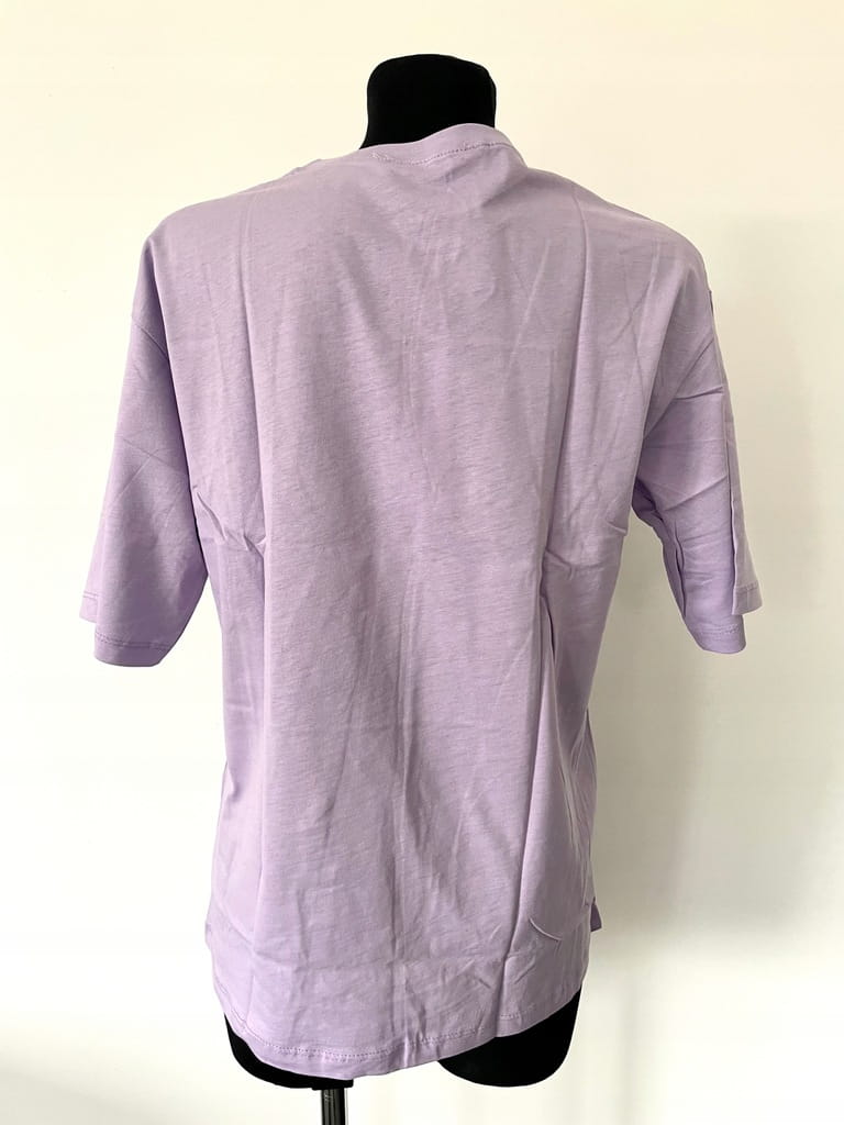 - kolor: jasnofioletowy/ fiołkowy; naszywka/ nadruk: czarny, biały
