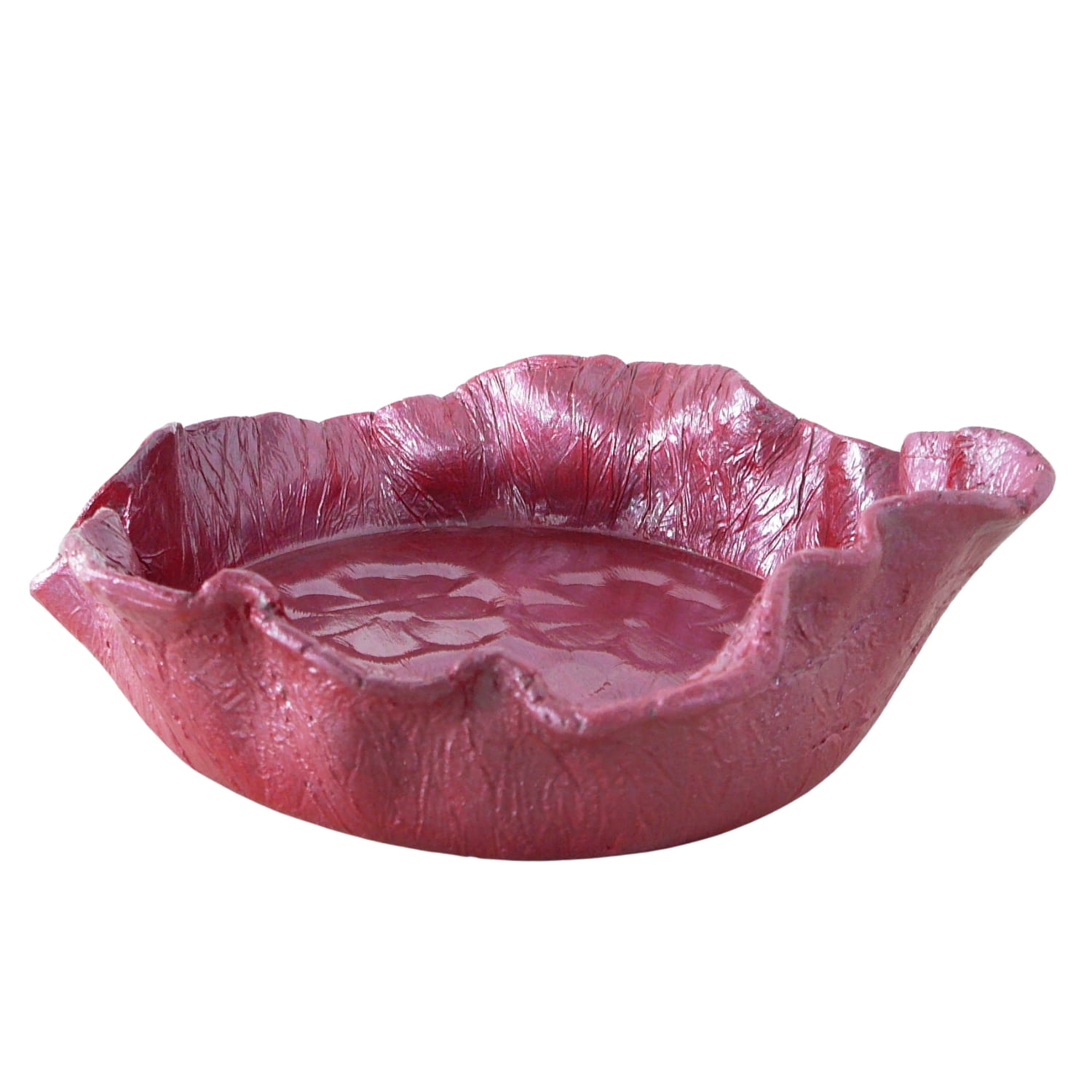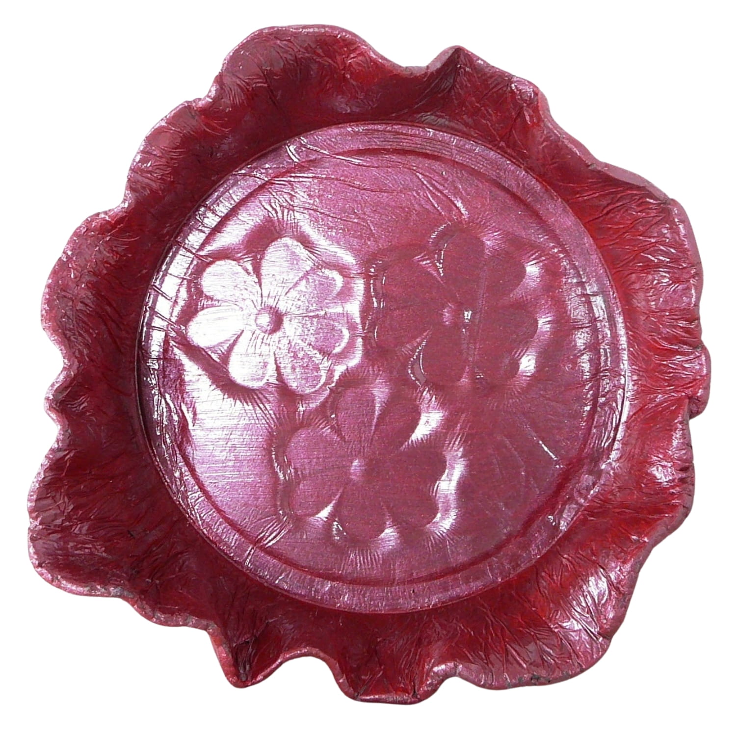 Malinowa dekoracyjna patera z betonu, z motywem kwiatów
