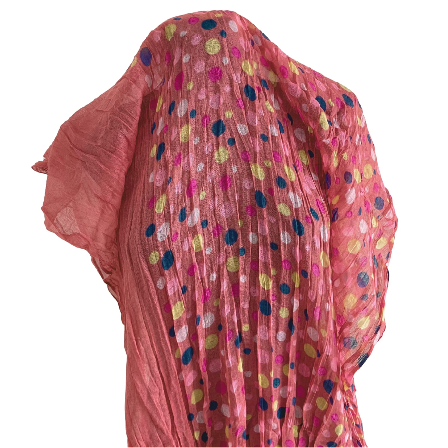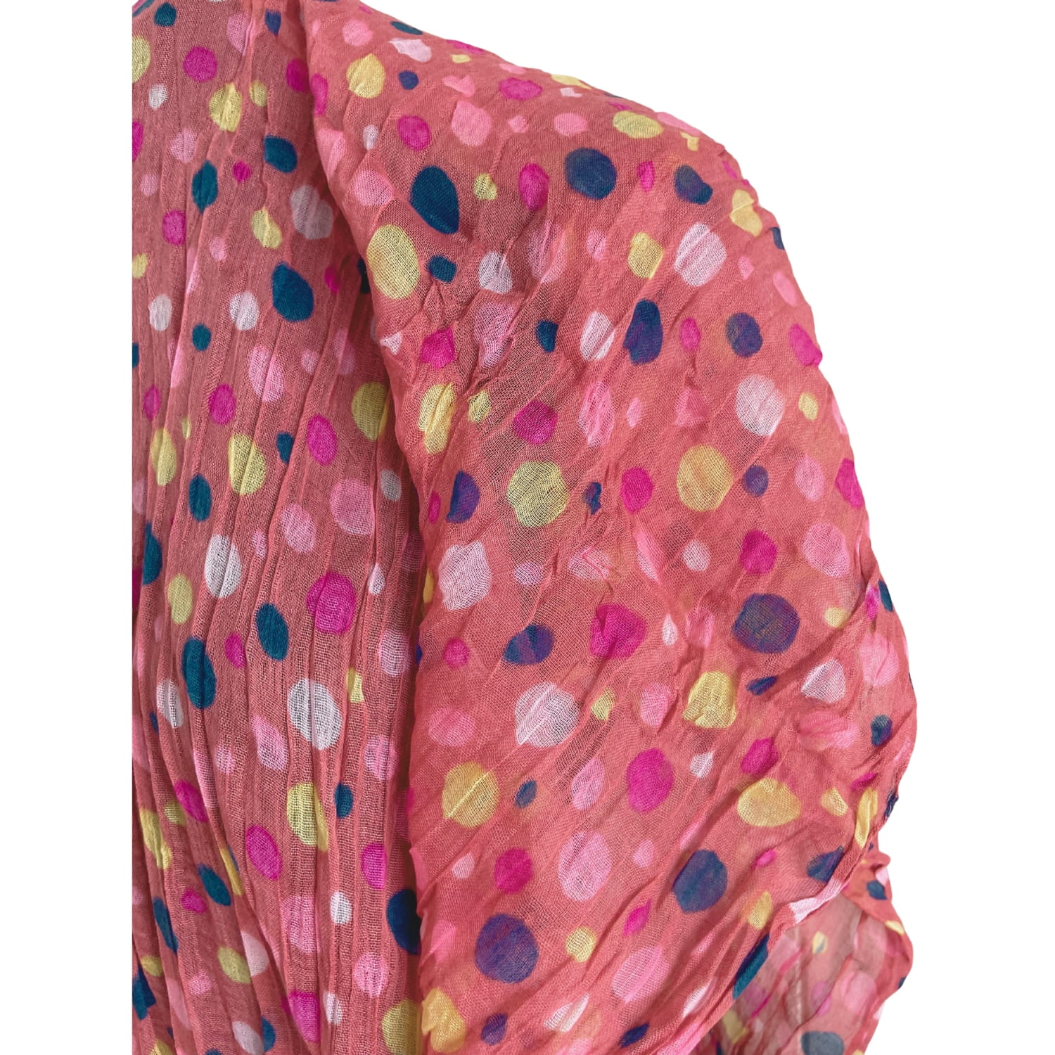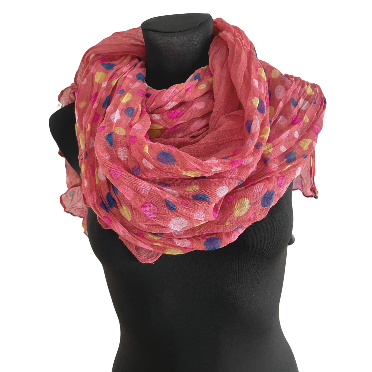 Malinowa różowa cienka damska chusta w kolorowe grochy groszki kropki - ok. 180 x 80 cm