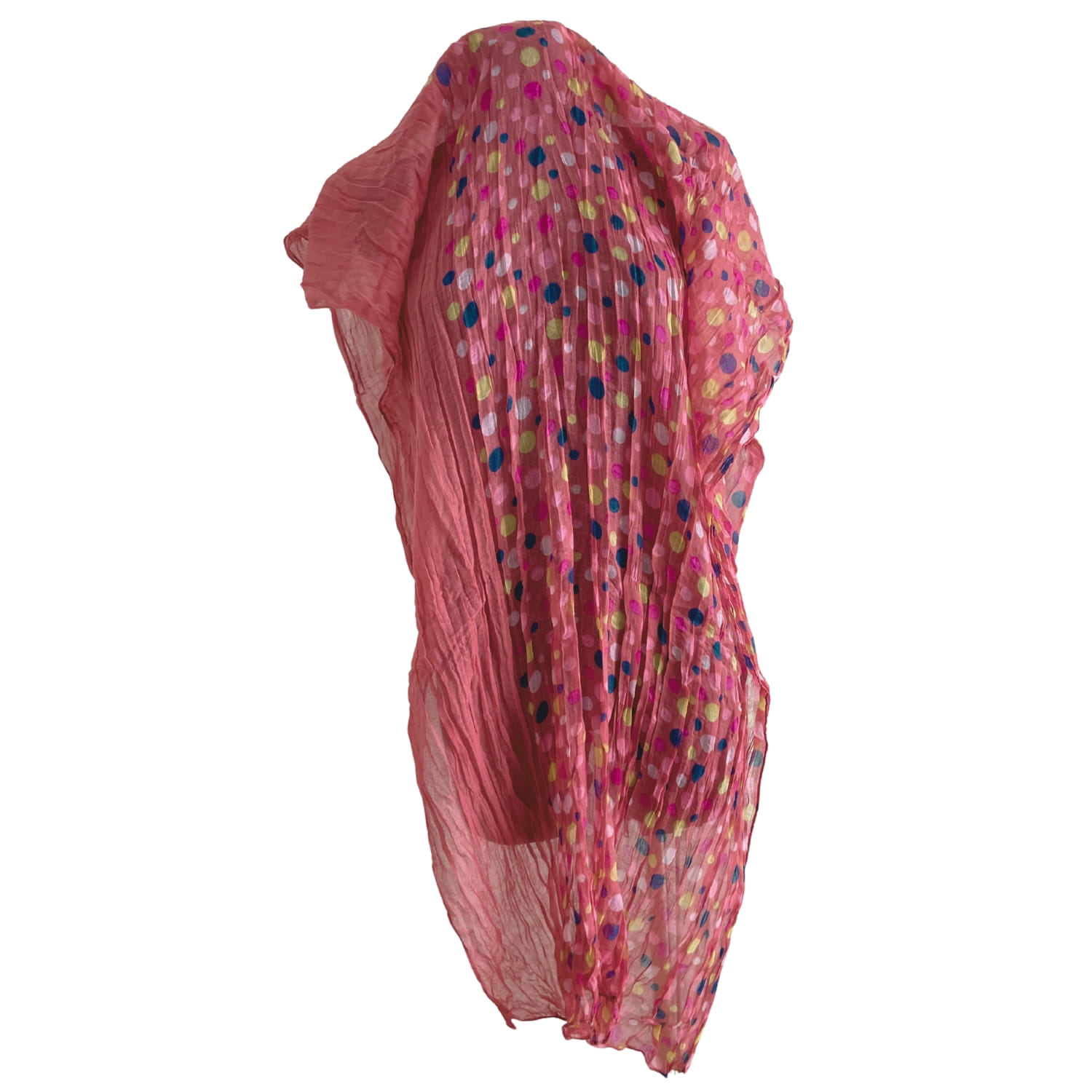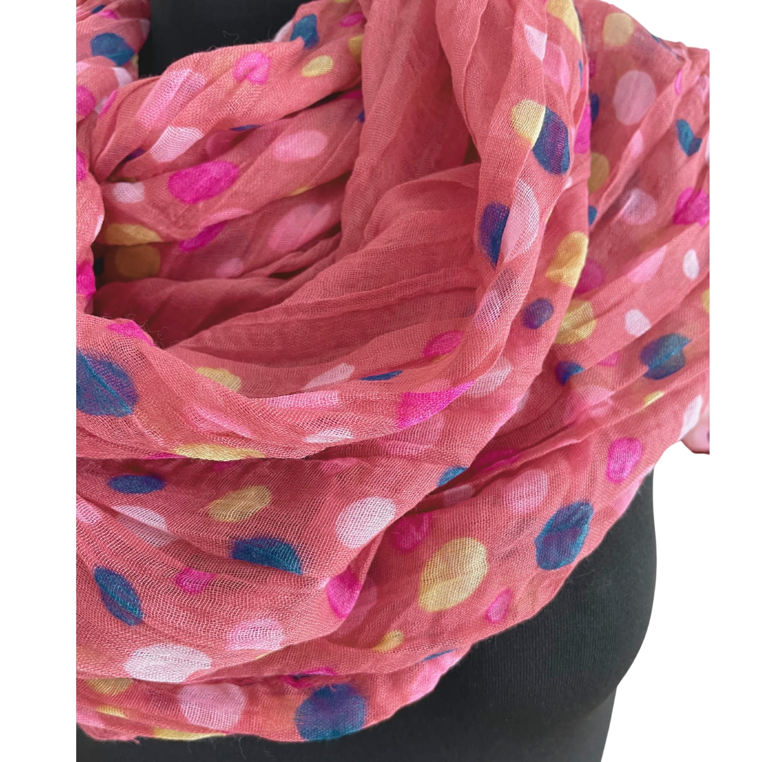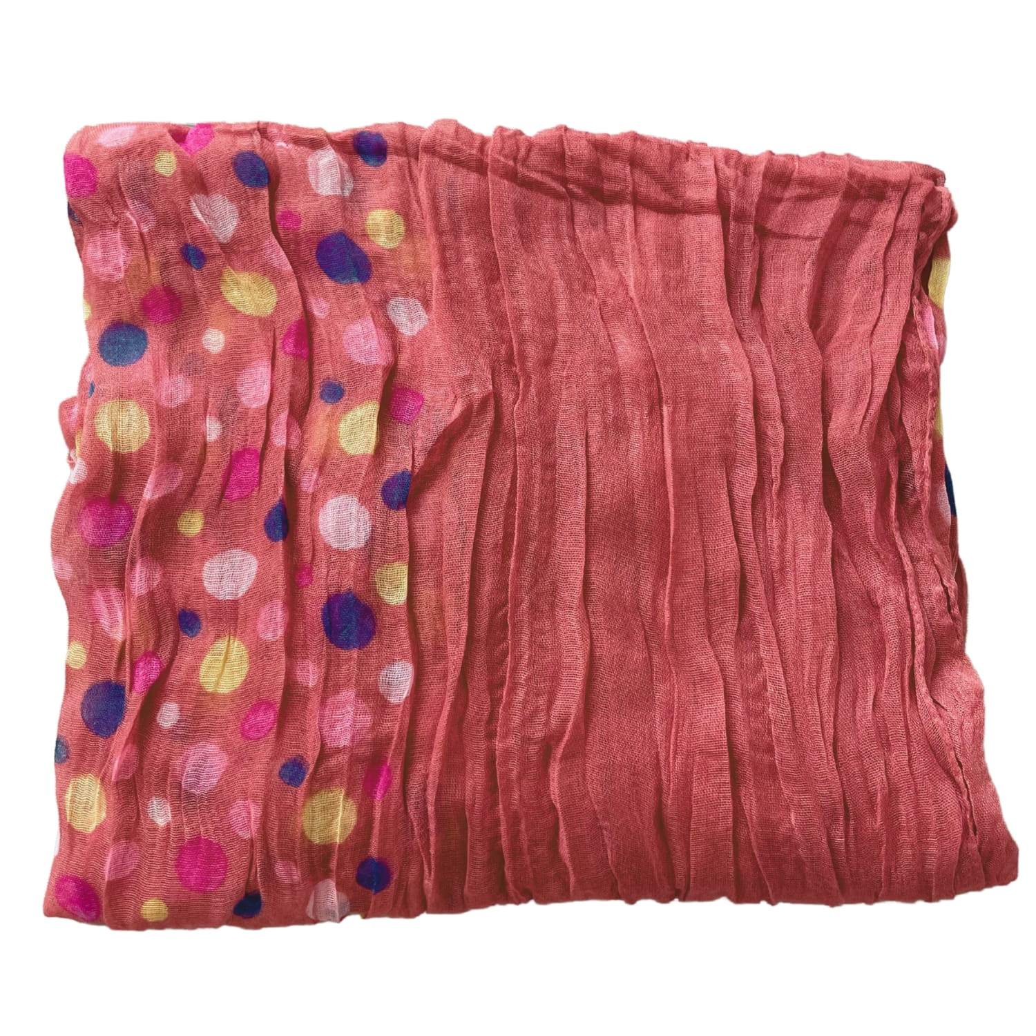 Malinowa różowa cienka damska chusta w kolorowe grochy groszki kropki - ok. 180 x 80 cm