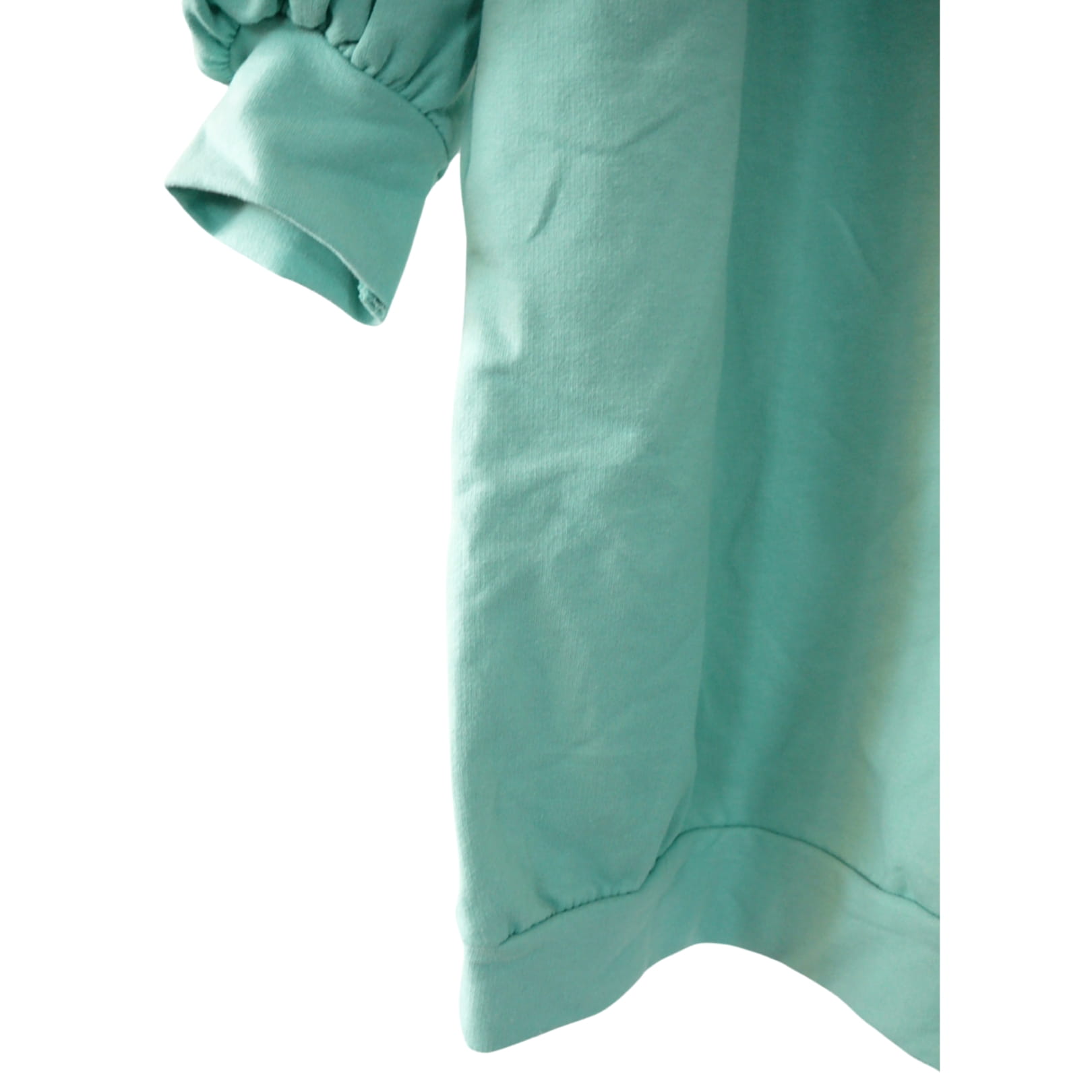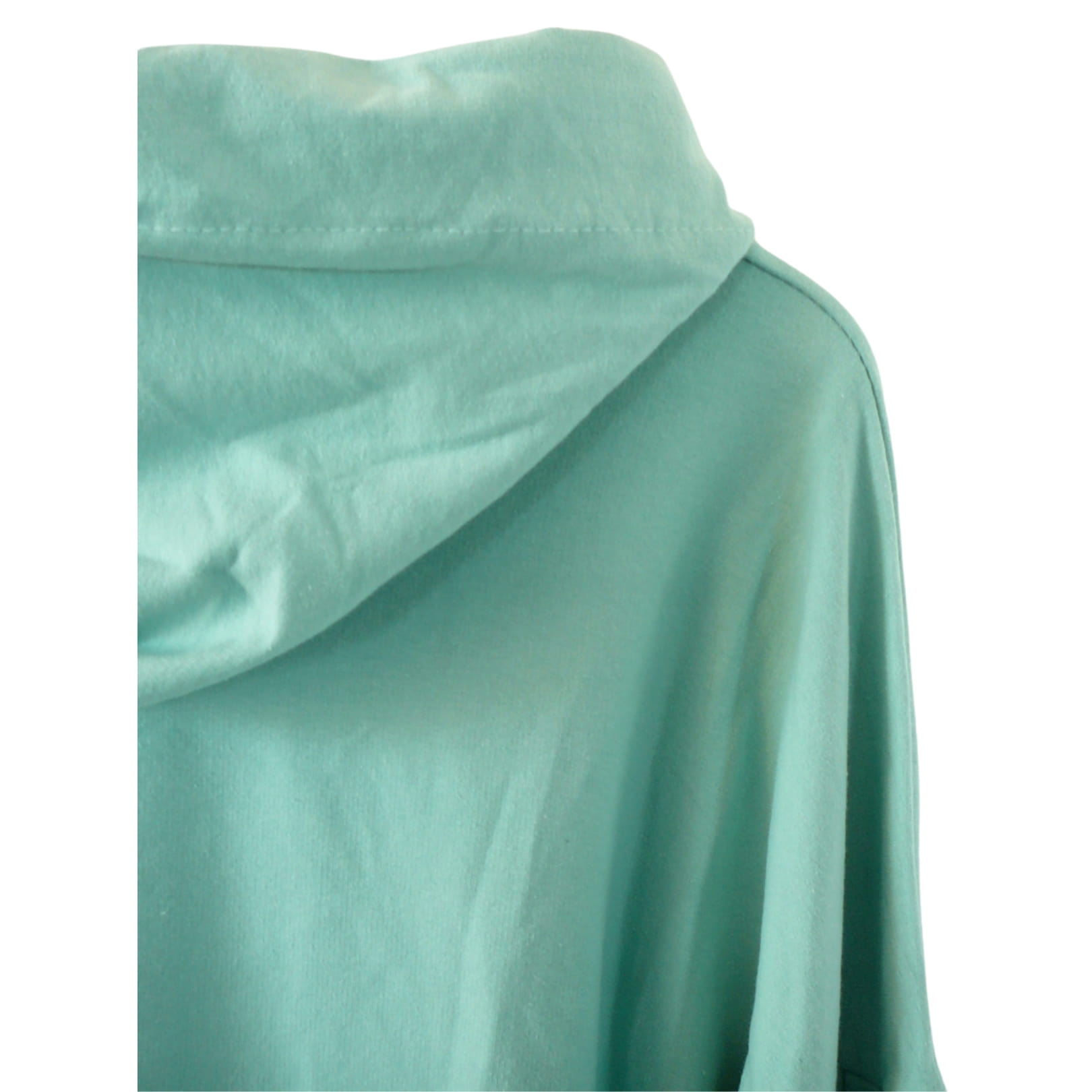 Miętowa awangardowa włoska długa damska bluza/ sukienka z kapturem, kieszeniami i długim, szerokim rękawem - r. uniwersalny