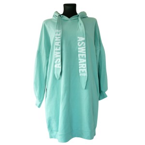 Luźna awangardowa długa bluza/ sukienka z kapturem w kolorze miętowym - postaw na oryginalność!