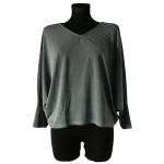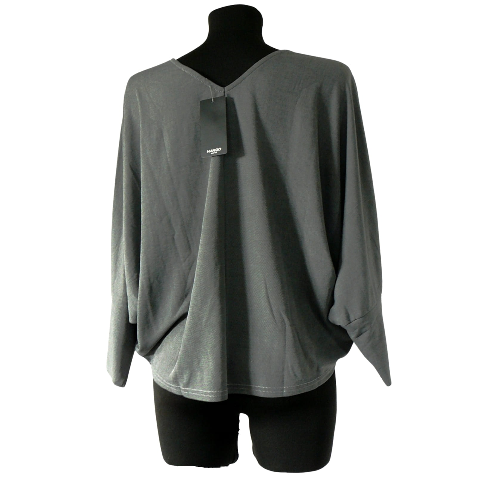 Oryginalna szara damska bluzka oversize typu "nietoperz" z długim rękawem i dekoltem w serek typu V - Mango