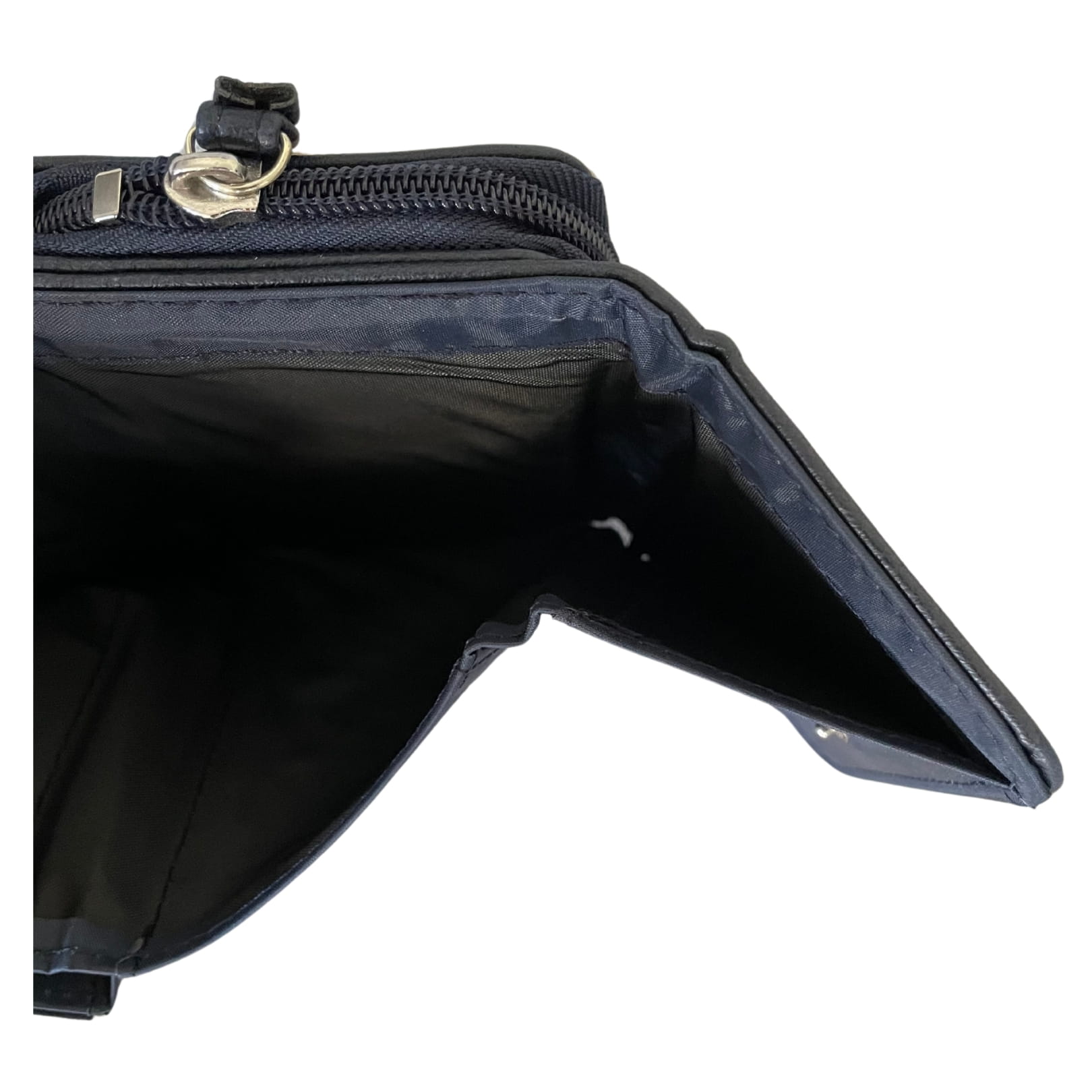 - kolor: granatowy; zamek, napis - srebrny