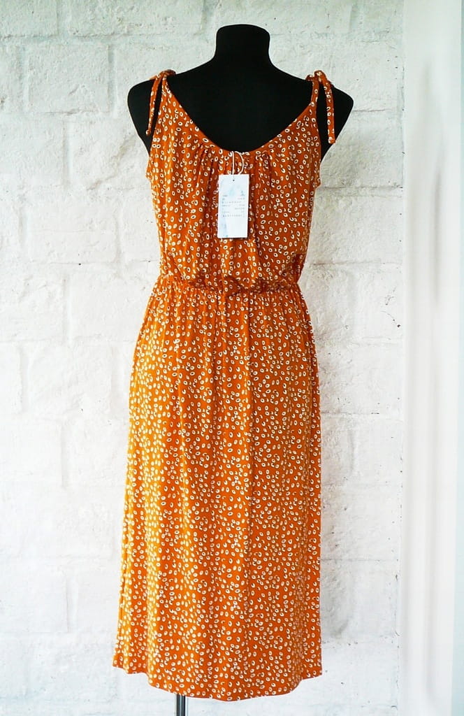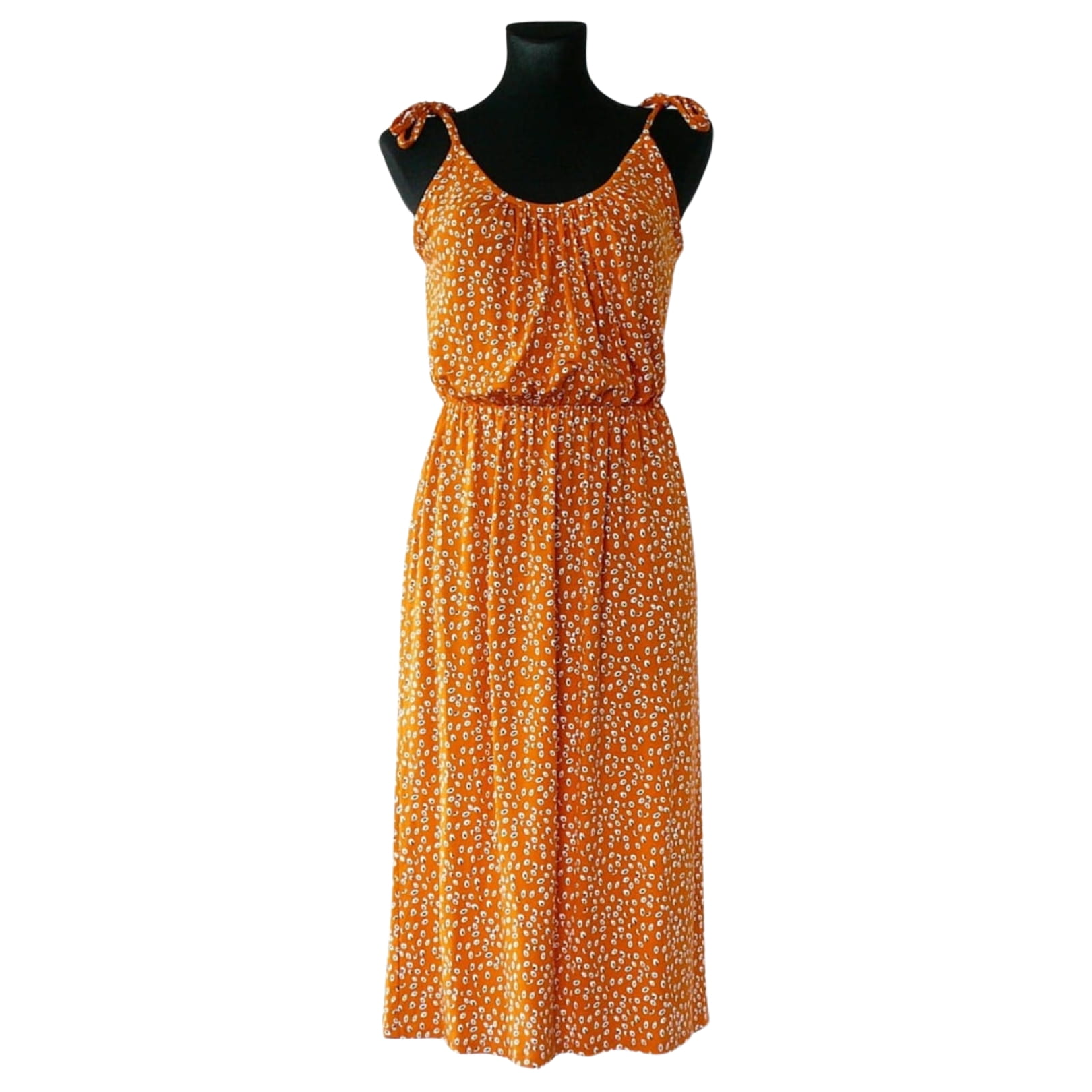 Pomarańczowa, wzorzysta letnia sukienka we wzory, bez rękawów, na regulowanych ramiączkach - rozmiar 40 L - Warehouse