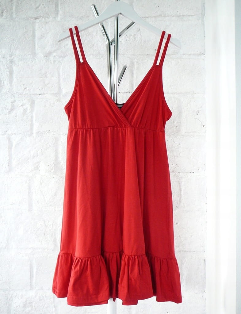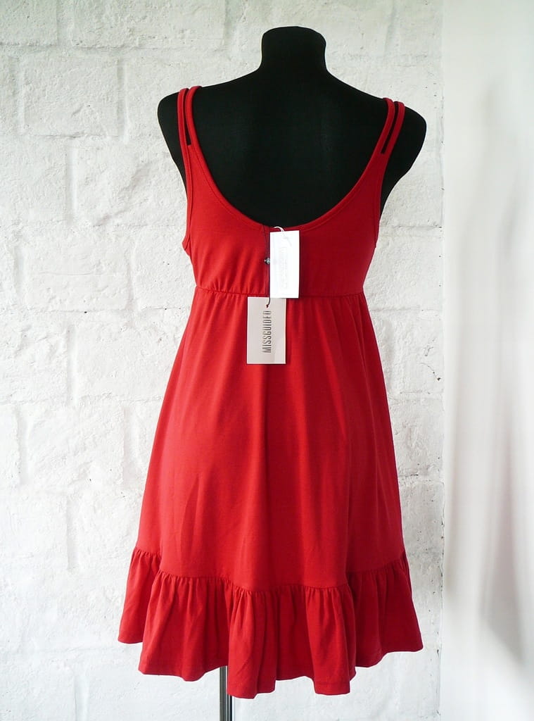 Rozkloszowana letnia czerwona sukienka na podwójnych ramiączkach - rozmiar 38 M - Missguided
