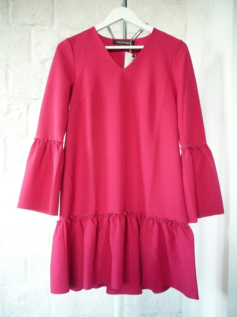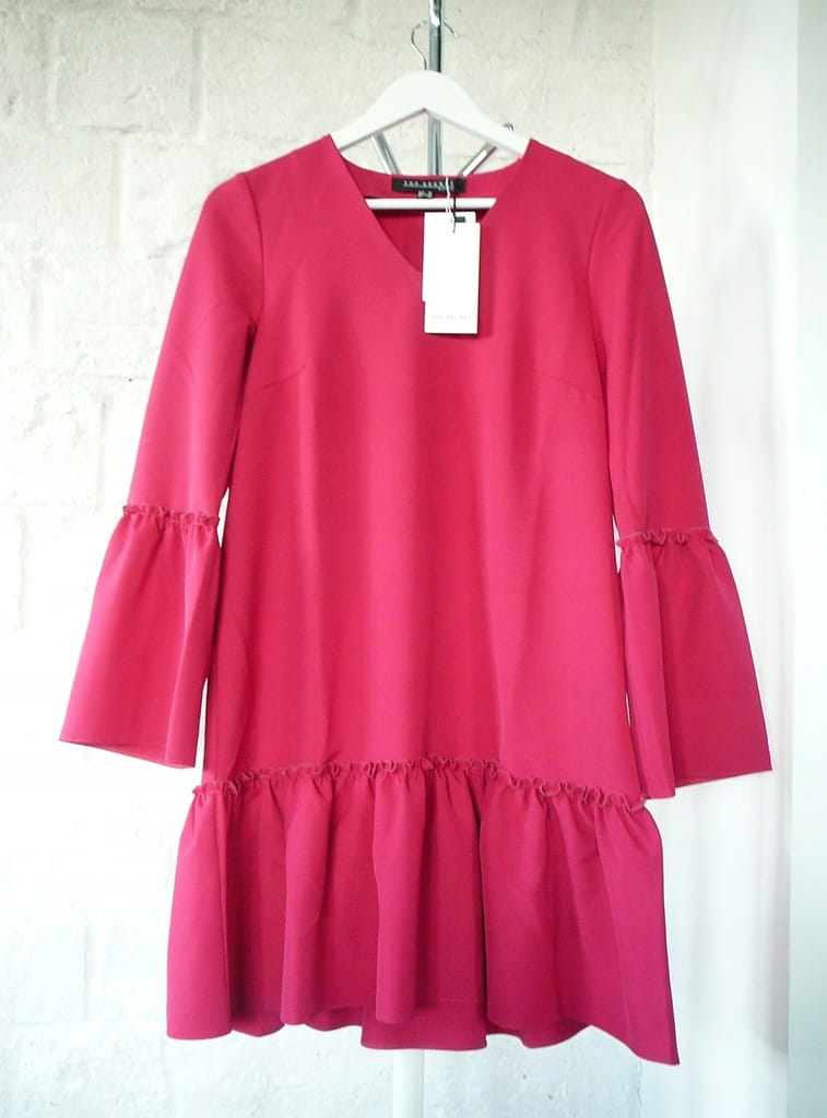 Różowa sukienka z falbaną i rozkloszowanymi rękawami TOP SECRET