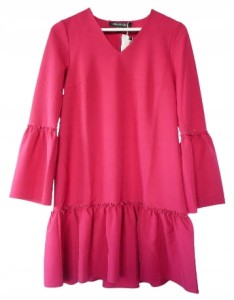 Różowa luźna rozkloszowana sukienka z falbaną i rozkloszowanymi długimi rękawami - rozmiar 36 S - Top Secret