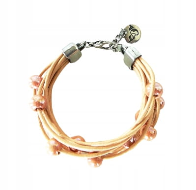 Skórzana bransoletka z ceramicznymi koralikami w brzoskwiniowym kolorze BY DZIUBEKA