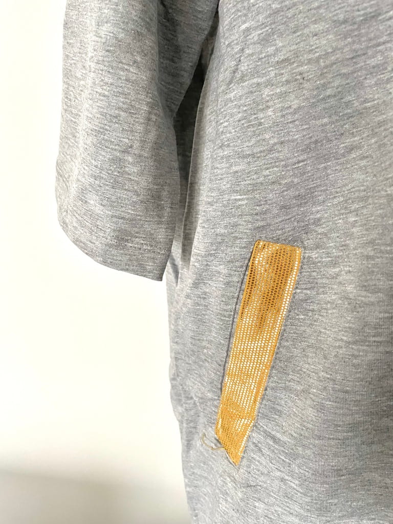 - kolor: jasnoszary melanż; dodatki - żółty, złoty