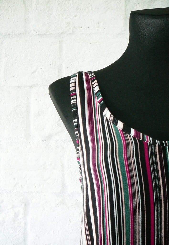 Wielokolorowa luźna letnia sukienka w pionowe paski, bez rękawów - rozmiar 36 S - Top Secret